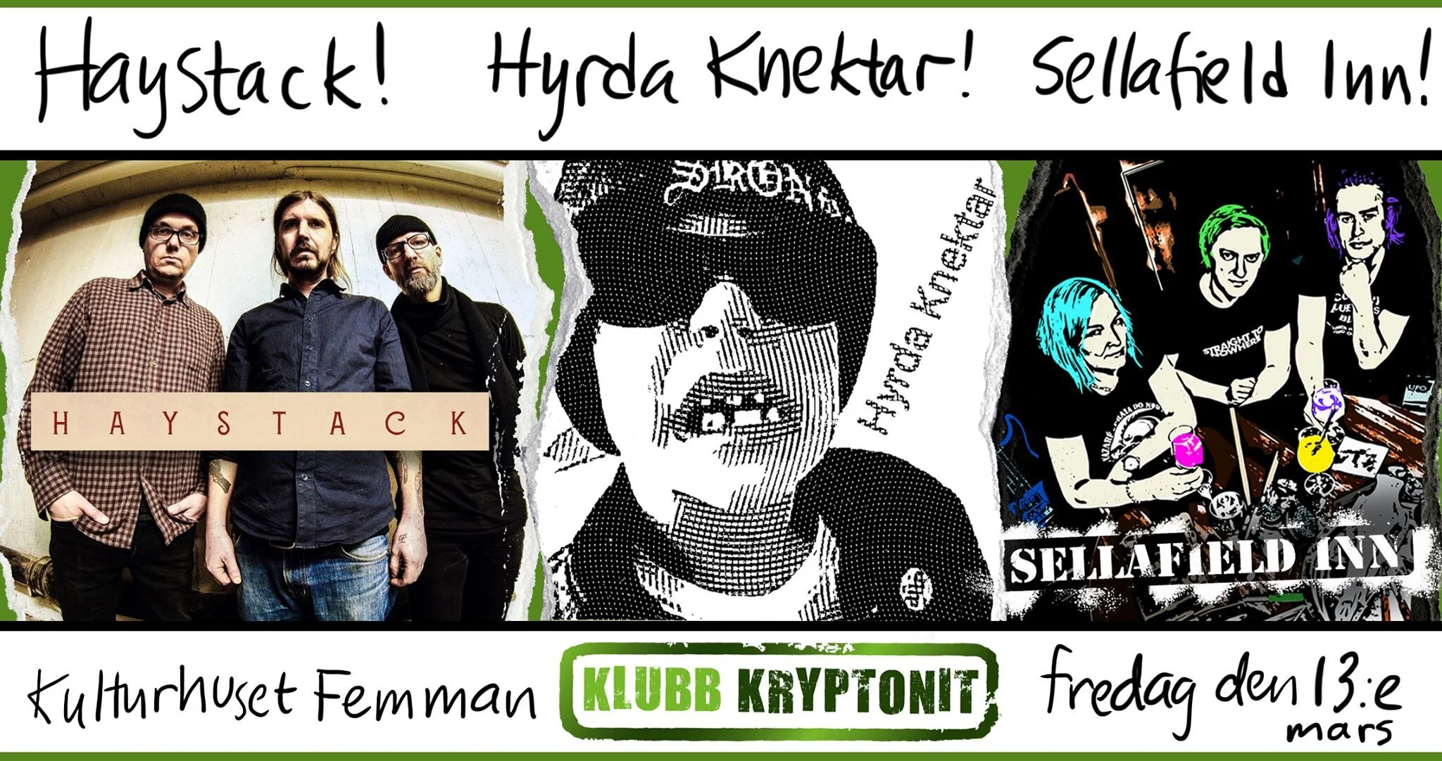 Välkomna till en FET fredag den trettonde! Kl 20.30: Hyrda Knektar. Punk, oi och rock n roll. Kl 22.00: Sellafield Inn. Apokalyptisk psykpunk. Kl 23.30: Haystack. Ulf Cederlunds (Entombed, Disfear) återuppväckta PowerTrio levererar Fucked Up Noise Rock! Läs mer och lyssna nedan!